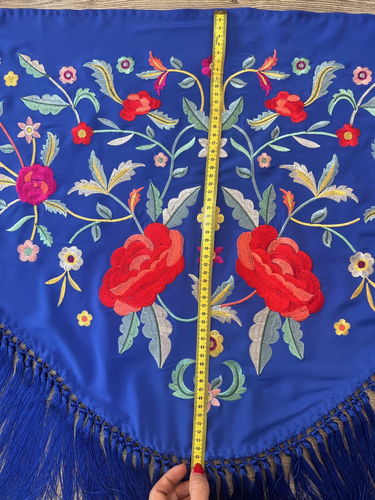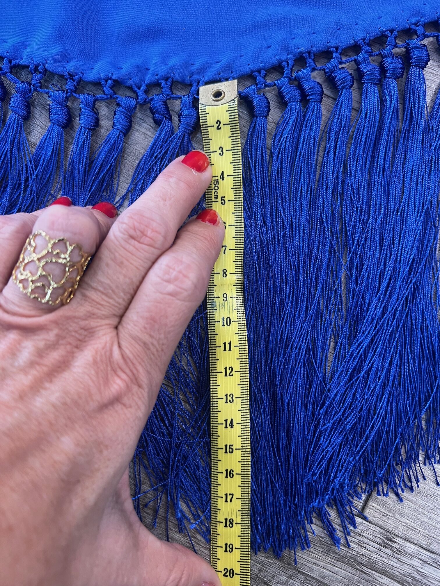 Medidas en galería de fotos; fleco 19cm / ancho 55cm / lago de extremo a extremo 140cm