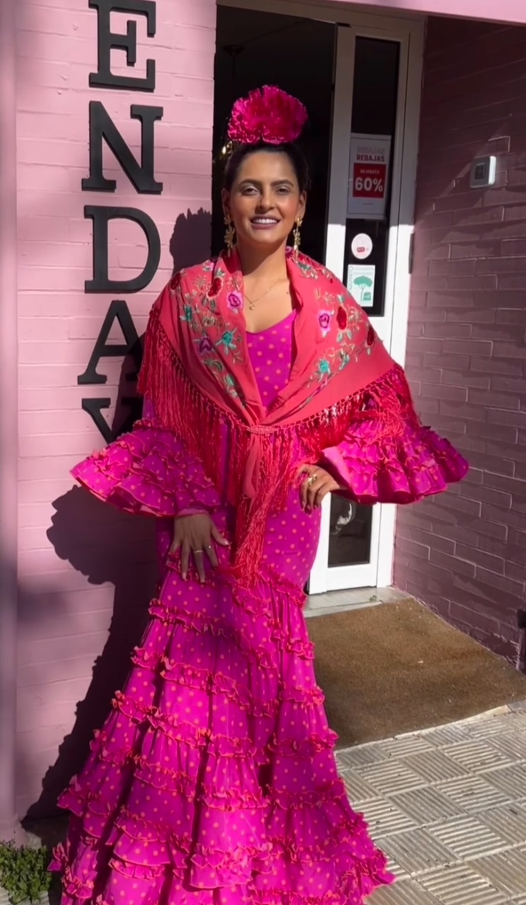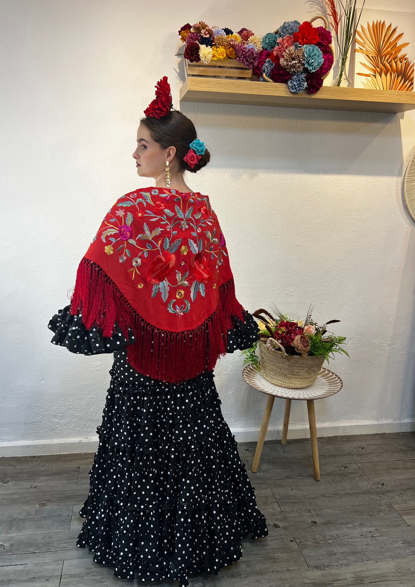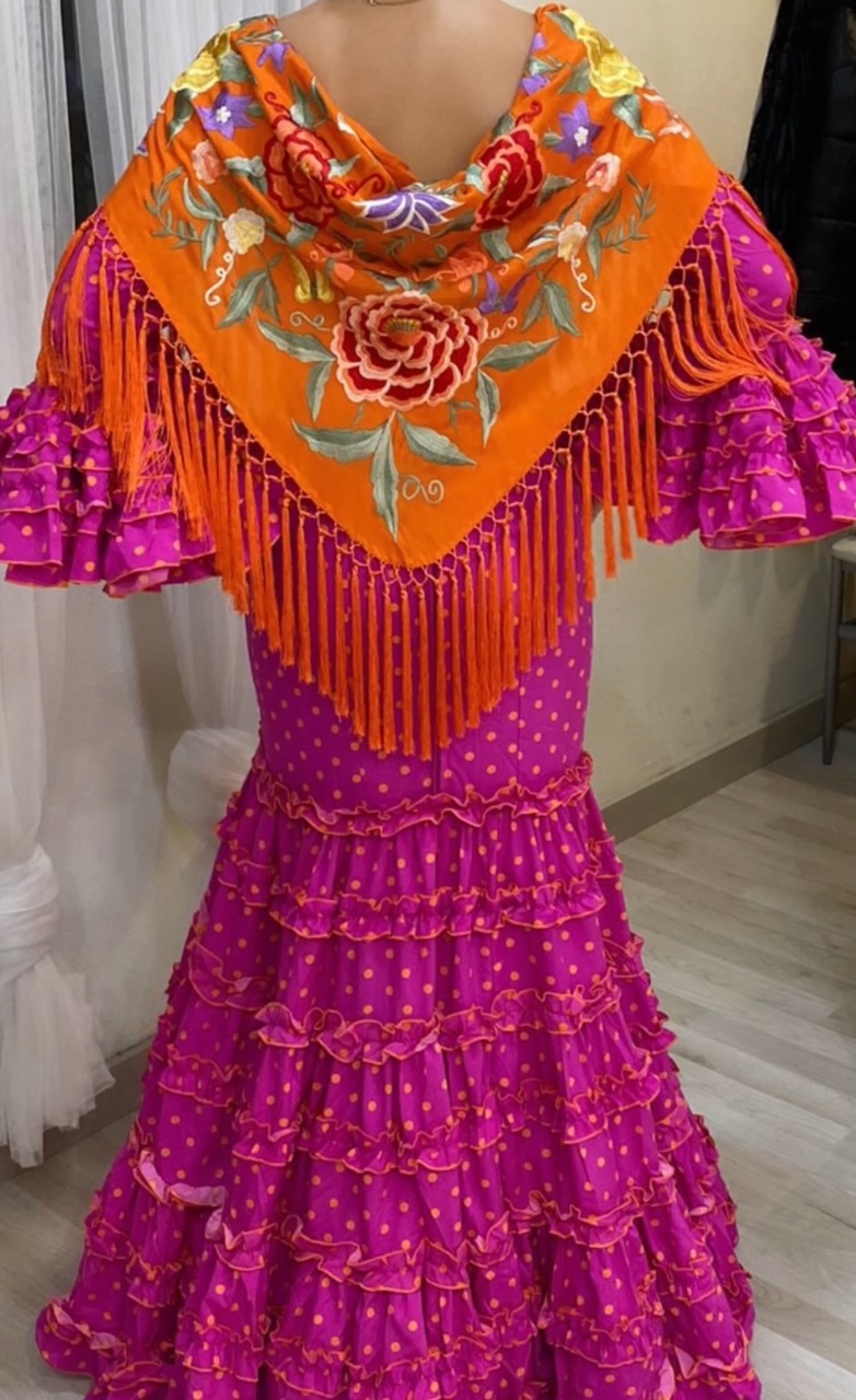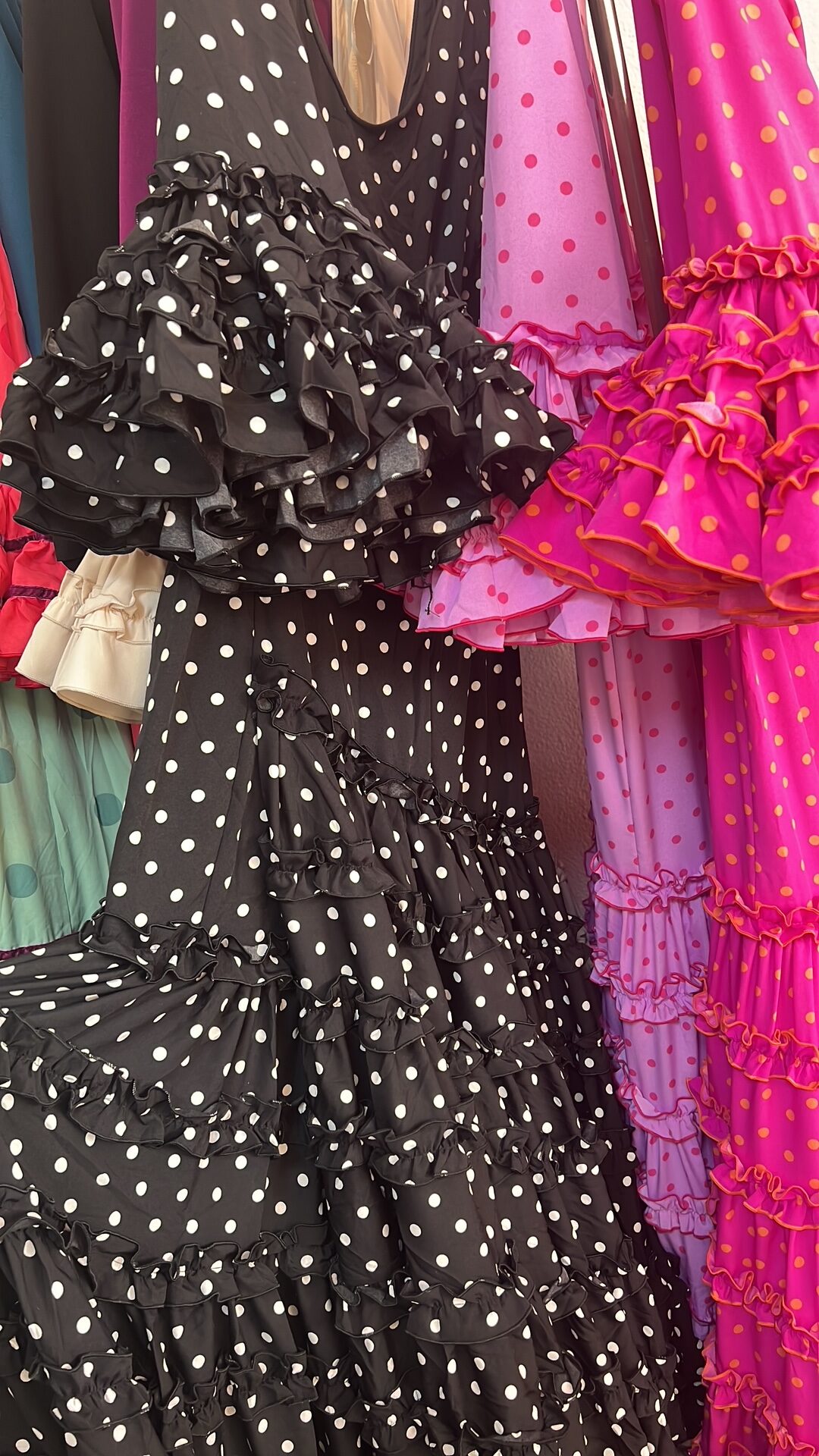 Precioso vestido de flamenca, con volante elevado hacia la cadera, tejido muy fino y fresquito. queda ideal !!